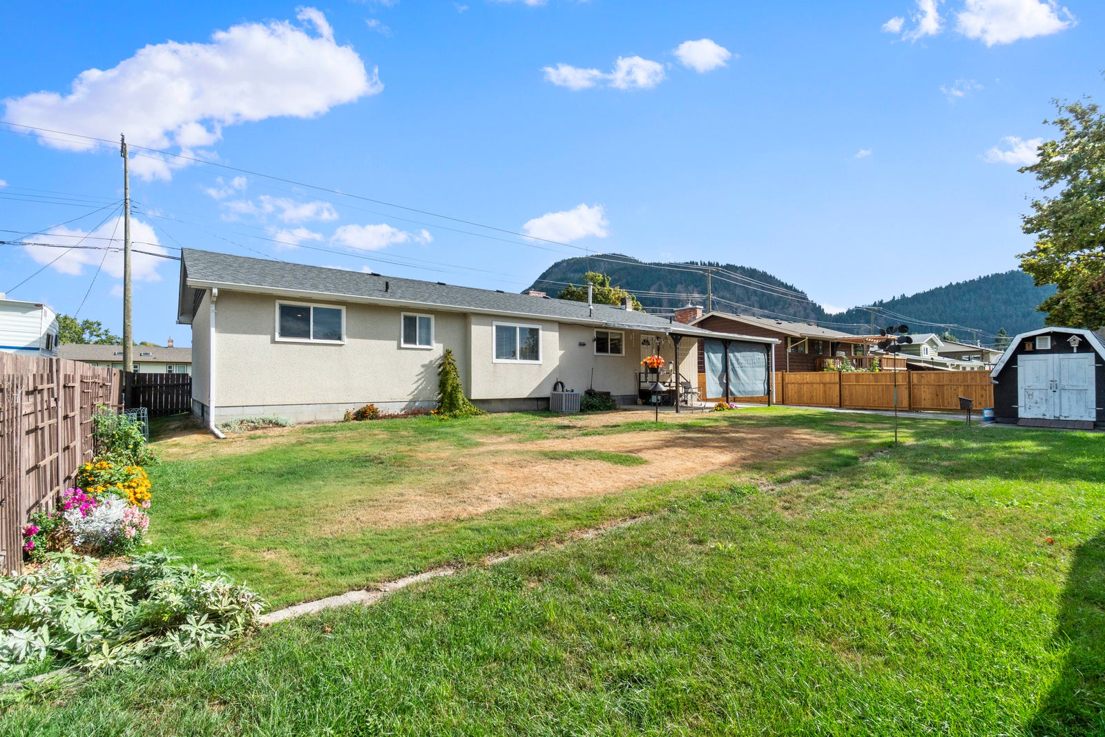 Spacious rancher with an attached 1 car garage, featuring 3 bedrooms, 1.5 bathrooms, and a crawl space. Situated on a large yard with an equipment shed. Enjoy the updated hot water tank, natural gas furnace, and central air. Located just a 40-minute drive from Kamloops, this home provides a solid base for your future upgrades and personal touches. Quick possession possible.